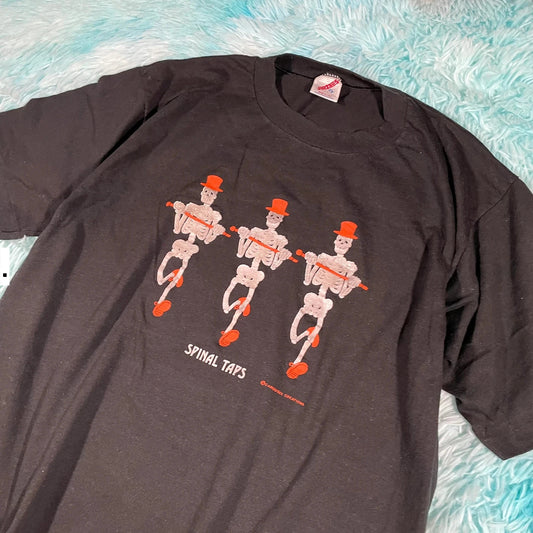 Vintage 90s Black Dancing Skeleton Graphic T shirt - XL