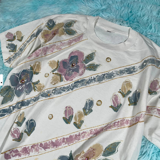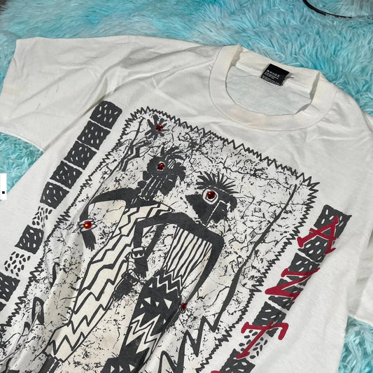 Vintage 90s White Aztec Graphic Print T Shirt - Xl