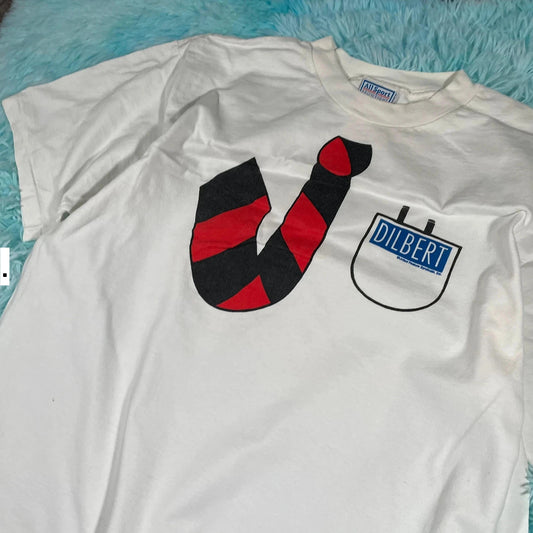 Vintage 90s White Dilbert Comic Graphic T Shirt - XL
