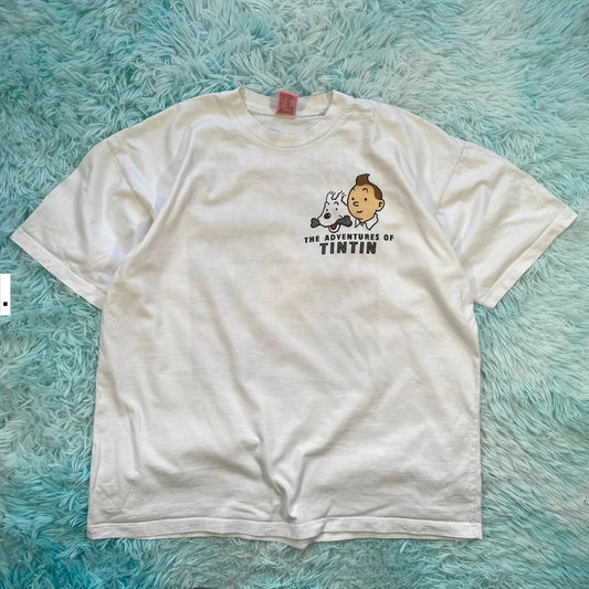 Vintage 90s White Tintin in the Congo Graphic T Shirt - XL