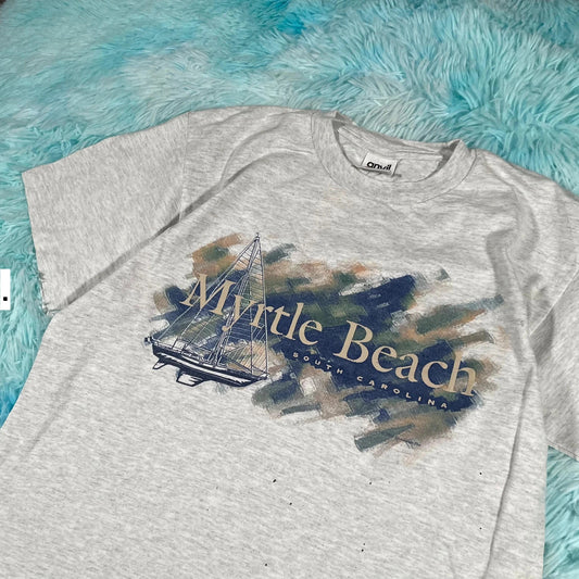 Vintage 90s Grey Myrtle Beach Graphic T Shirt - Medium