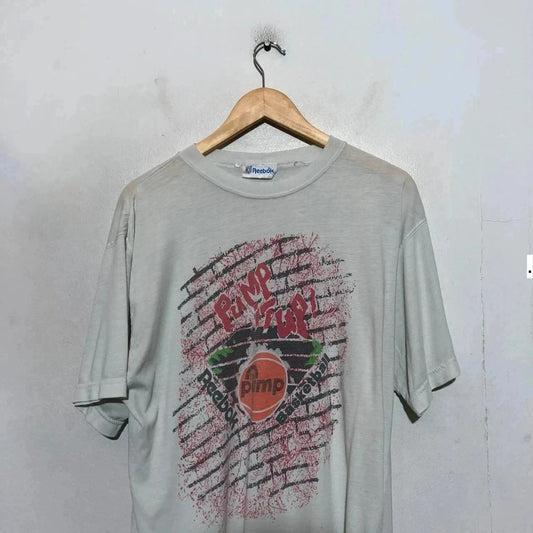 Vintage 80s White Reebok “The Pump” Trainer Graphic Print T Shirt - Large