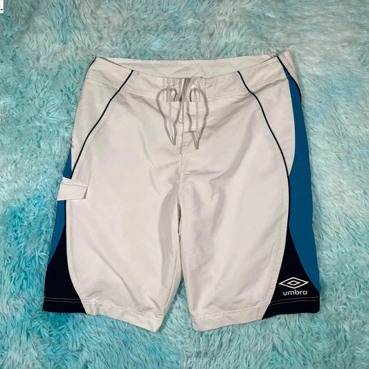 Vintage 00s White & Blue Umbro Swim Shorts - Medium