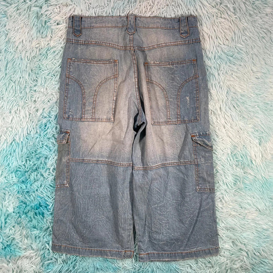 Vintage 00s Blue Cargo Jean Shorts Jorts - 30W