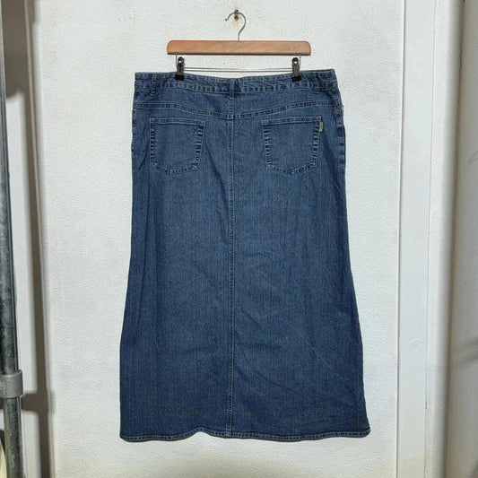 Vintage 00s Blue Denim Skirt Embroidered - Size 20
