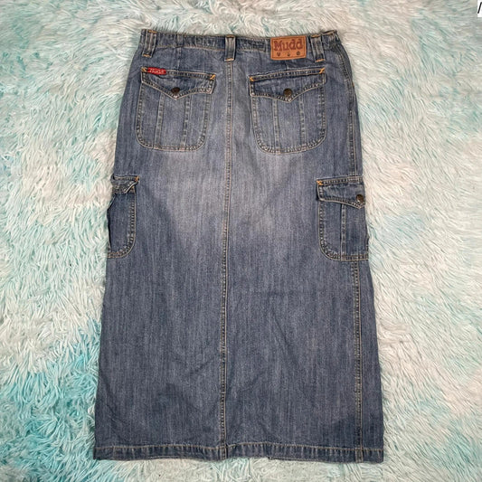 Vintage 90s Long Denim Cargo Skirt - Size 16