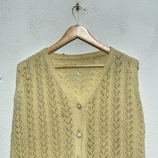 Vintage 90s Cream Sweater Vest Cardigan - Small