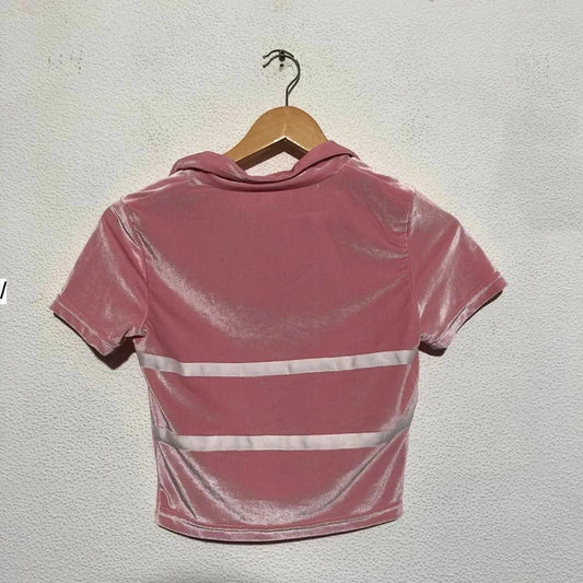 Vintage Y2K Pink Velour Collard Crop Top - Small