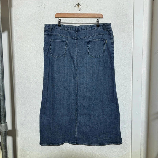 Vintage 00s Blue Denim Skirt Embroidered - Size 20