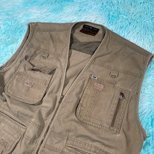 Vintage Khaki Fishing Utility Vest - XXL
