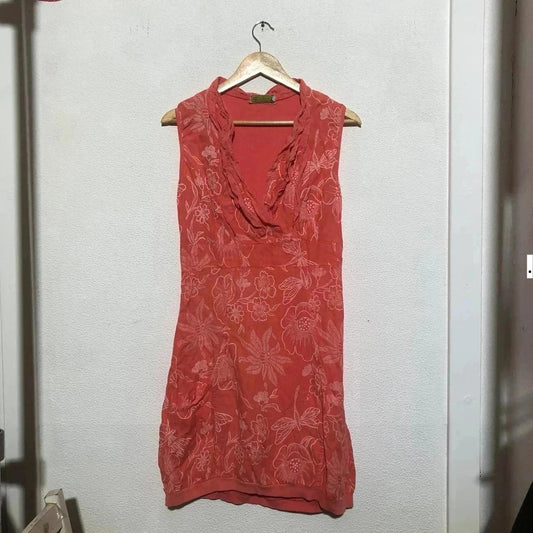 Vintage Y2K peach Floral Summer Dress made in Italy Low Cut - Medium