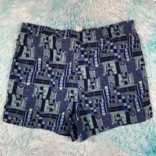 Vintage 90s Blue Funky Pattern Swim Shorts - Large