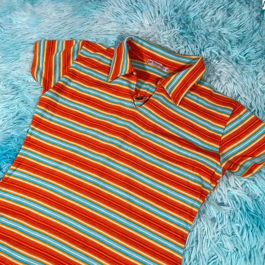 Vintage 90s Orange & Blue Striped Dress - Size 14