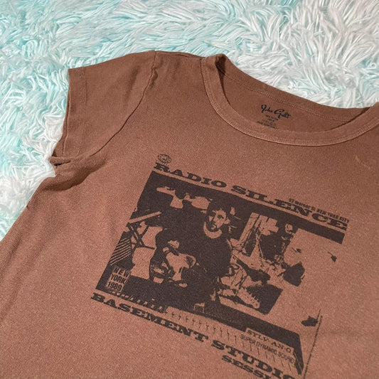 Vintage Y2K Brown Recording Studio Graphic Baby Tee - Size 12