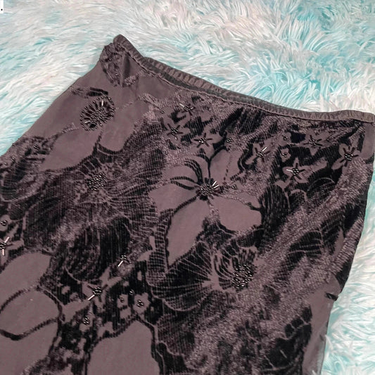Vintage 00s Black Floral Patterned Skirt East - Size 10