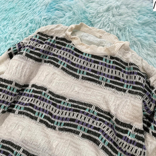 Vintage 90s Funky Patterned Knitted Jumper - Large