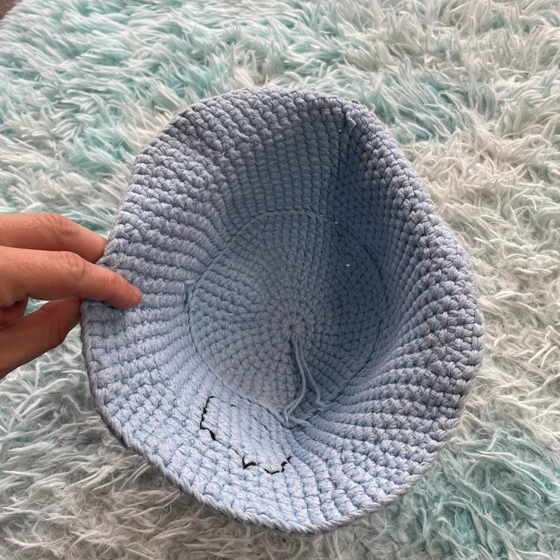 Baby Blue Crochet Hat Smiley, brand: NO LABEL, condition: Very good, size: One size