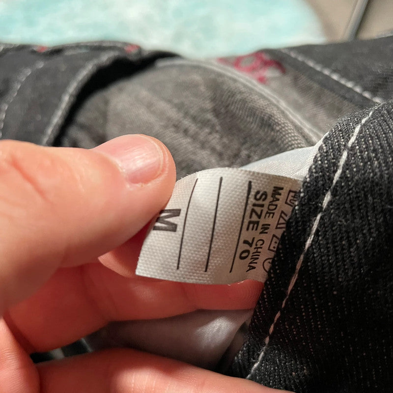 Black Baggy Embroidered Jeans - Medium, brand: NO LABEL, condition: Very good, size: M