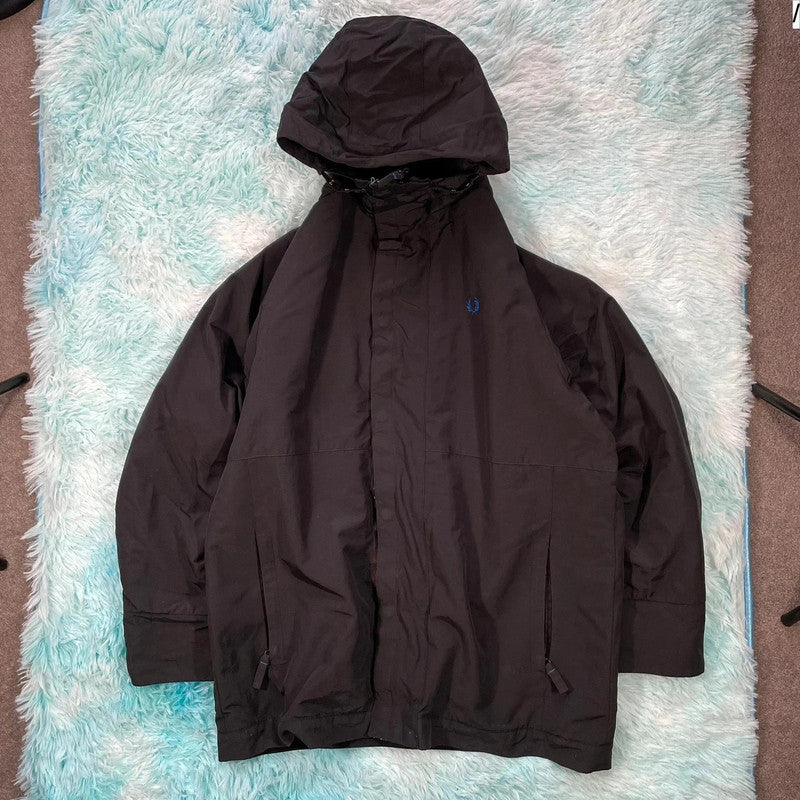 Black Fred Perry Jacket Coat Fleece Lined - Large