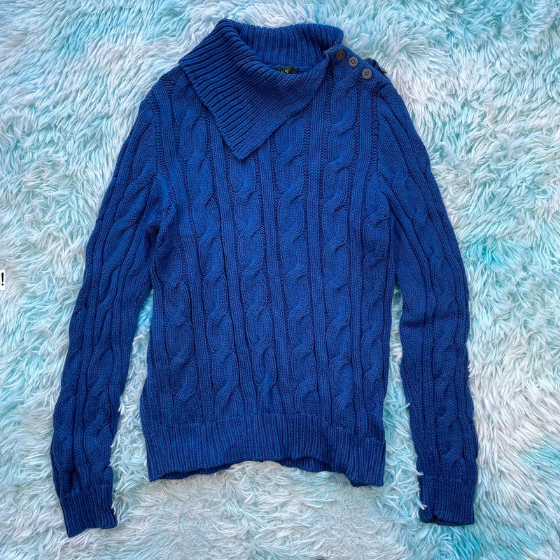 Blue Ralph Lauren Cable Knitted Jumper Collared - Large