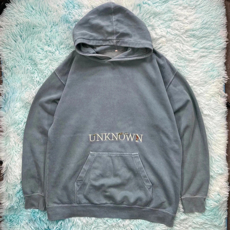 Blue Unknown Embroidered Hoodie Heavyweight - Large