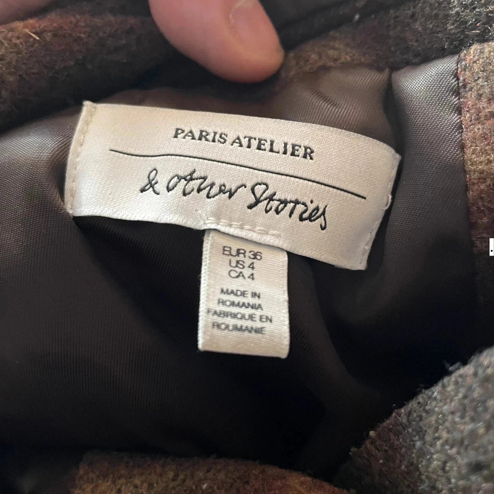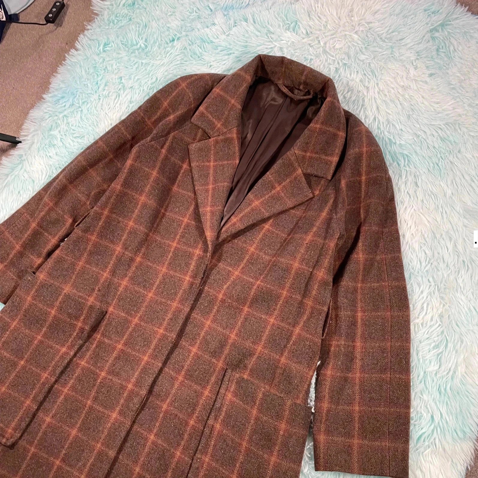Brown Chequered Paris Atelier Wool Long Coat - Size 6