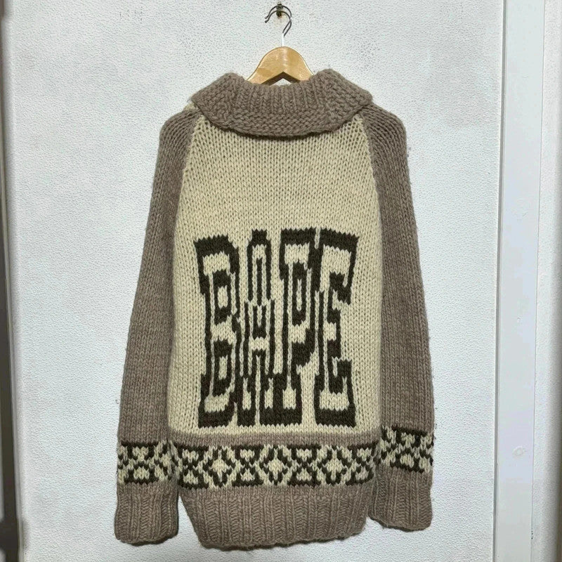 Cream & Beige BAPE Cowachan Knitted Jumper - Large, brand: A Bathing Ape (BAPE), condition: Very good, size: L