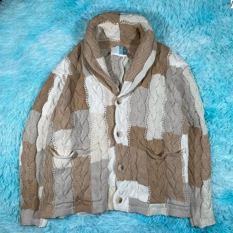Cream & Brown Heavyweight Kith Cardigan Knitted Jumper - Large