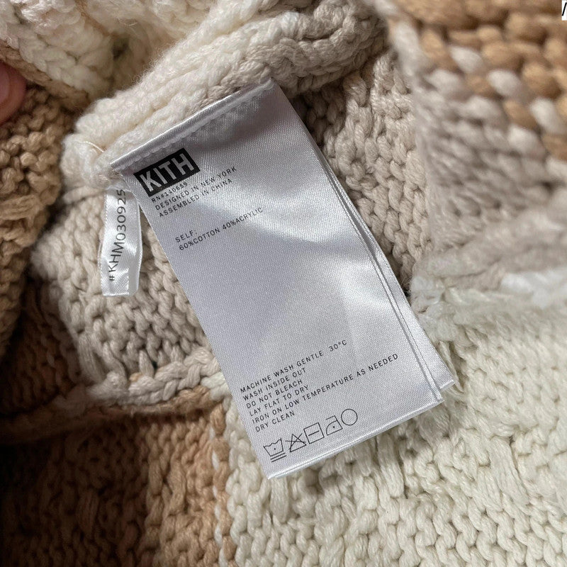 Cream & Brown Heavyweight Kith Cardigan Knitted Jumper - Large, brand: Kith, condition: Very good, size: L