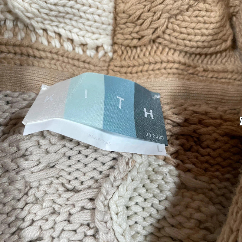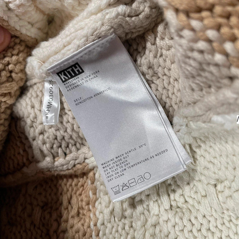 Cream & Brown Heavyweight Kith Cardigan Knitted Jumper - Large, brand: Kith, condition: Very good, size: L