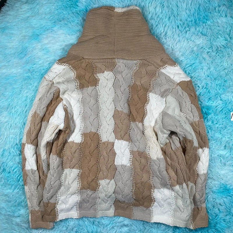 Cream & Brown Heavyweight Kith Cardigan Knitted Jumper - Large