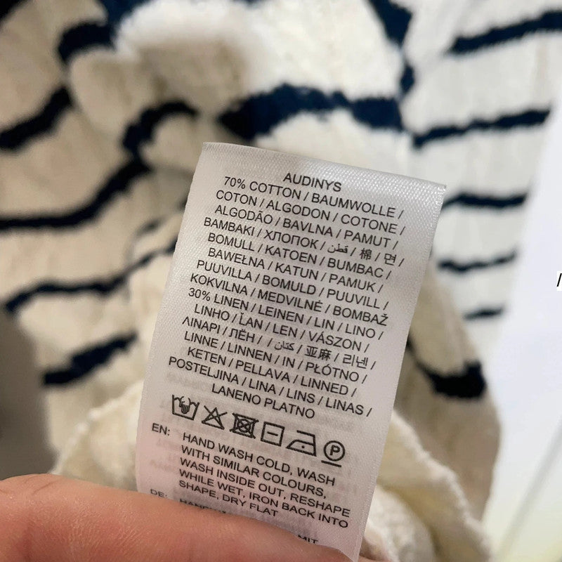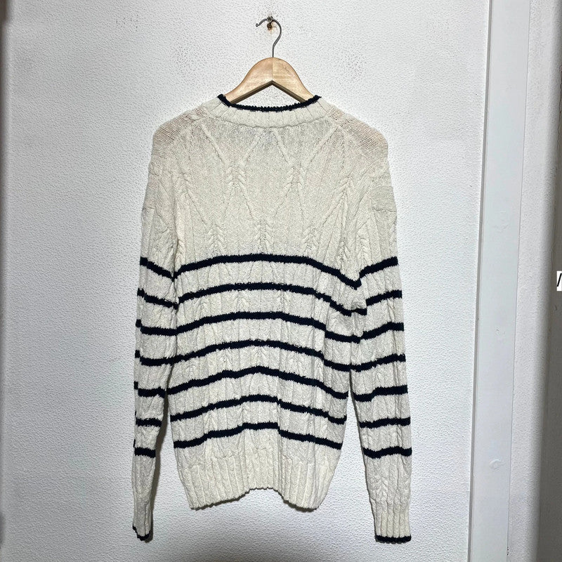 Cream & Navy Striped Gant Knitted Jumper Linen Blend - Large
