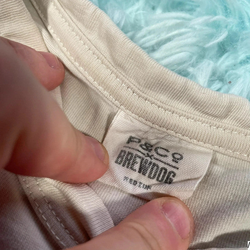 Cream P & Co x Brewdog Graphic T Shirt - Large, brand: P&CO, condition: Good, size: L