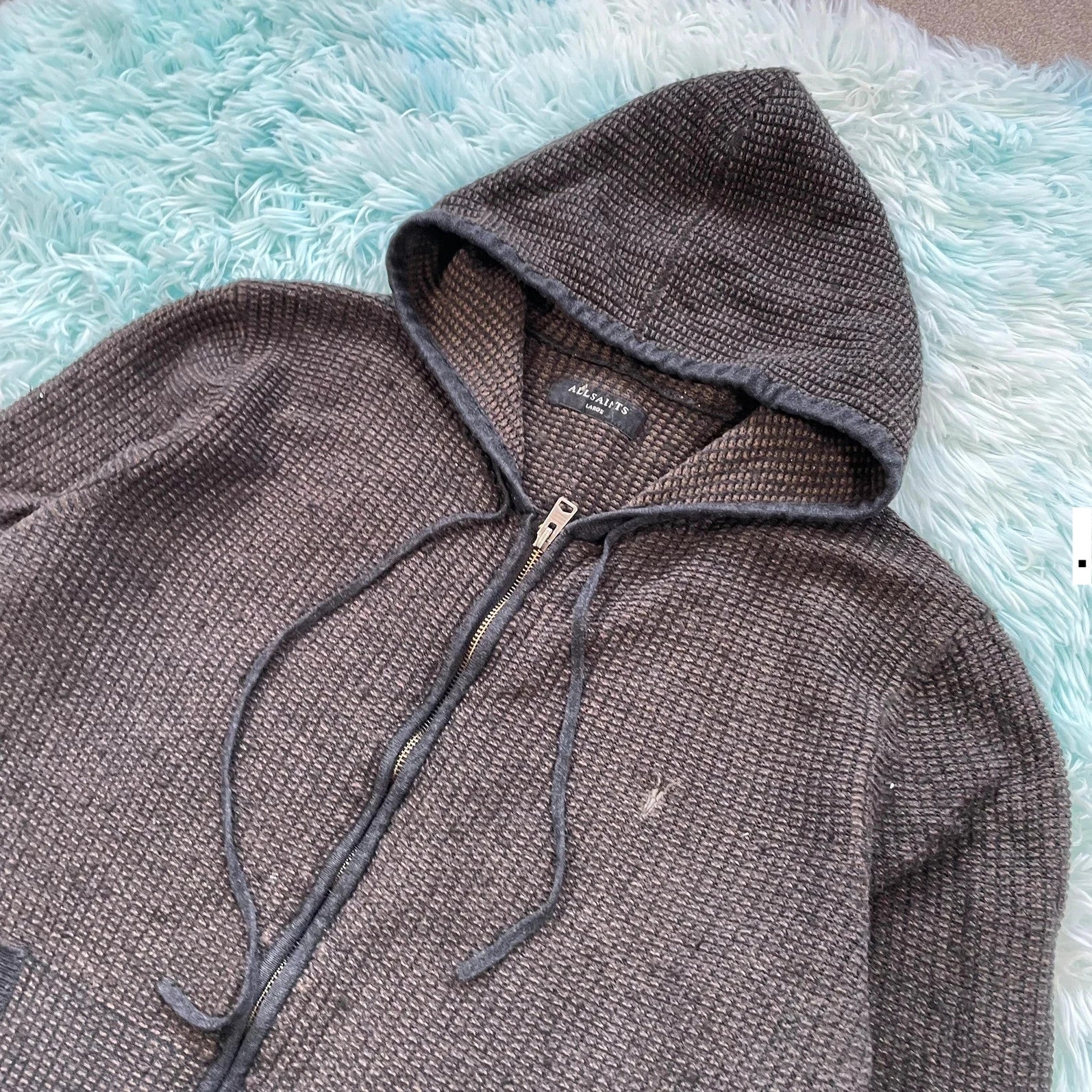 Dark Brown AllSaints Ribbed Knitted Hoodie Full Zip - Large