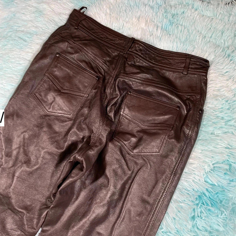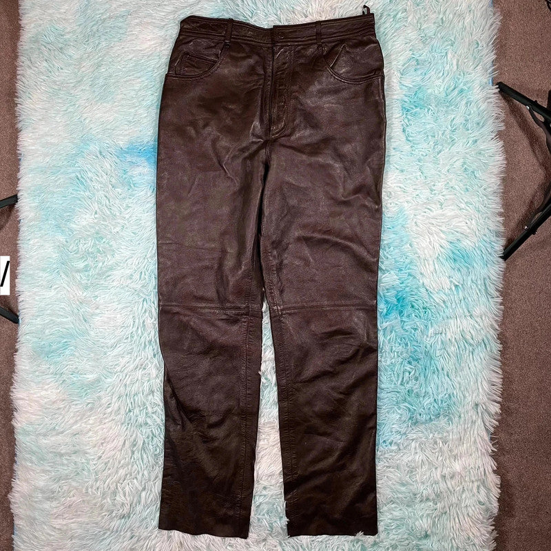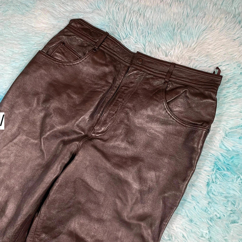 Dark Brown Leather Trousers Pants - Size 16