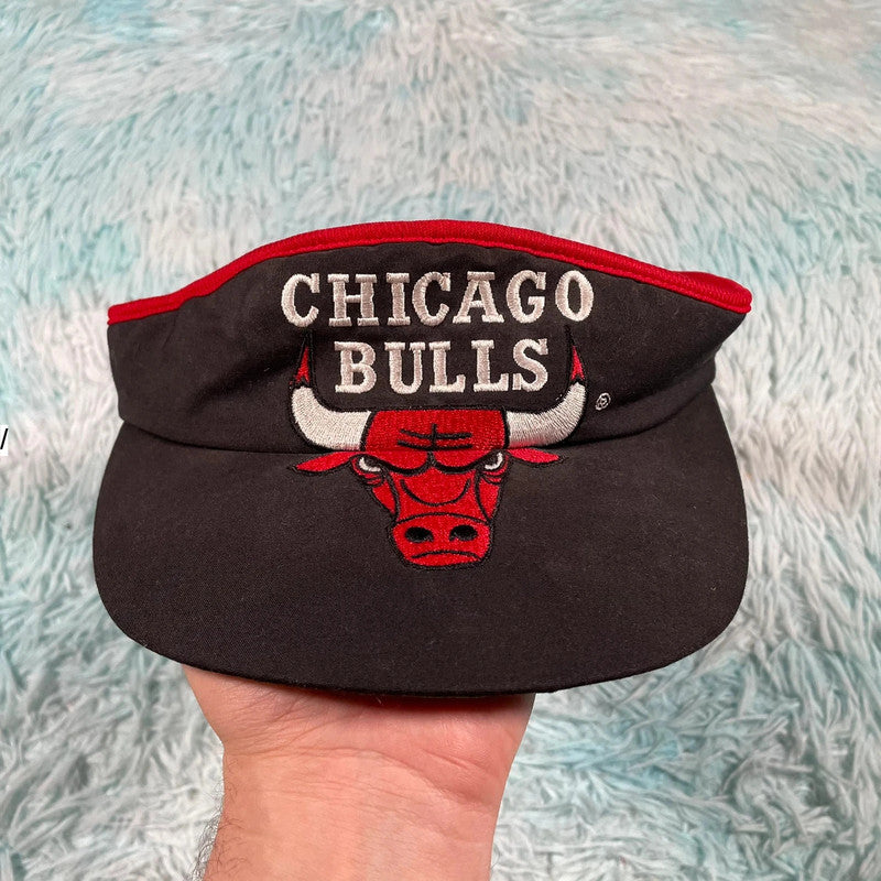 Deadstock Vintage 90s Black Chicago Bulls Visor Cap, brand: NFL, condition: New with tags, size: One size