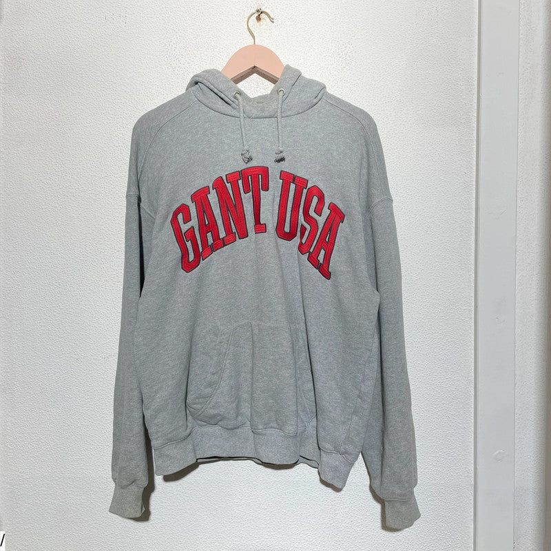 Grey Gant Hoodie Embroidered Spellout - Small