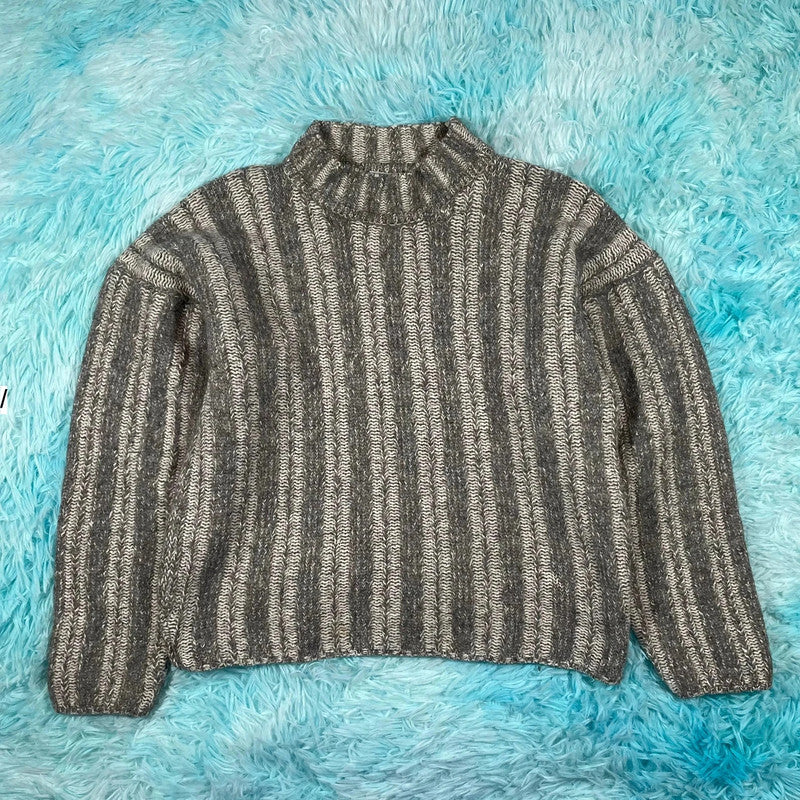 Grey Patterned Knitted Jumper - Womens Medium, brand: NO LABEL, condition: Very good, size: 6 / S