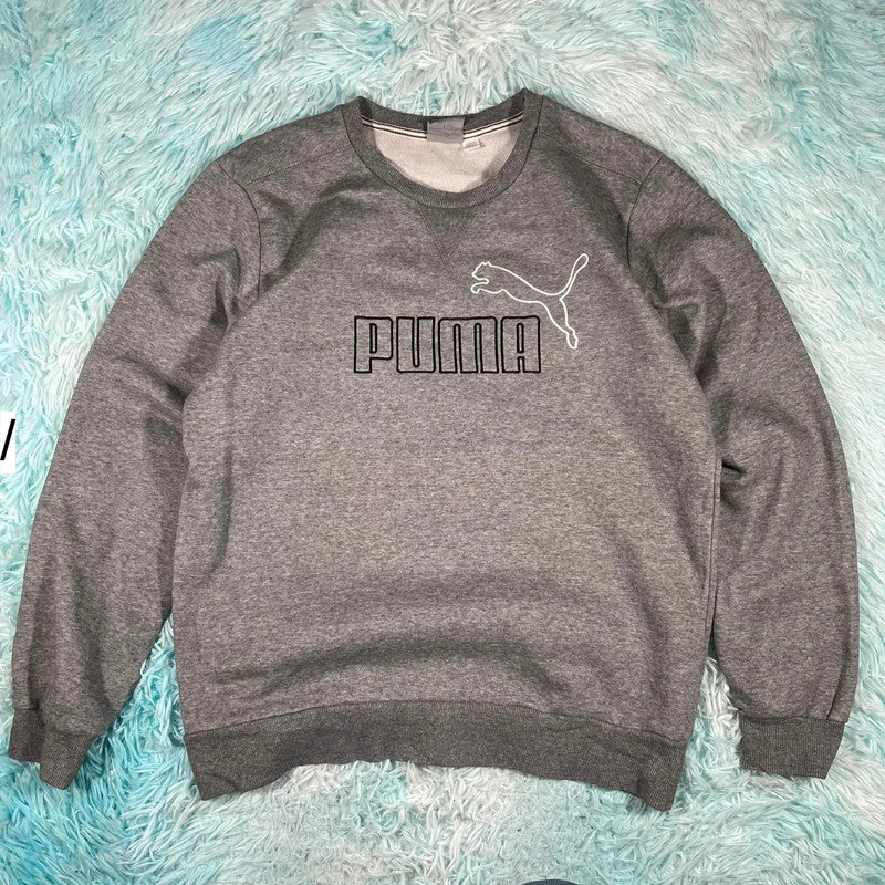 Grey Puma Sweatshirt Embroidered Spellout - Medium, brand: Puma, condition: Very good, size: M