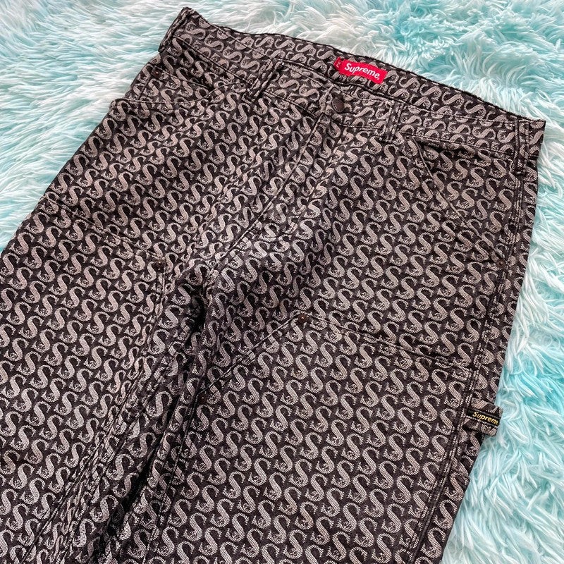 Grey Supreme Jacquard Jeans Double Knee - 34W, brand: Supreme, condition: Very good, size: W34