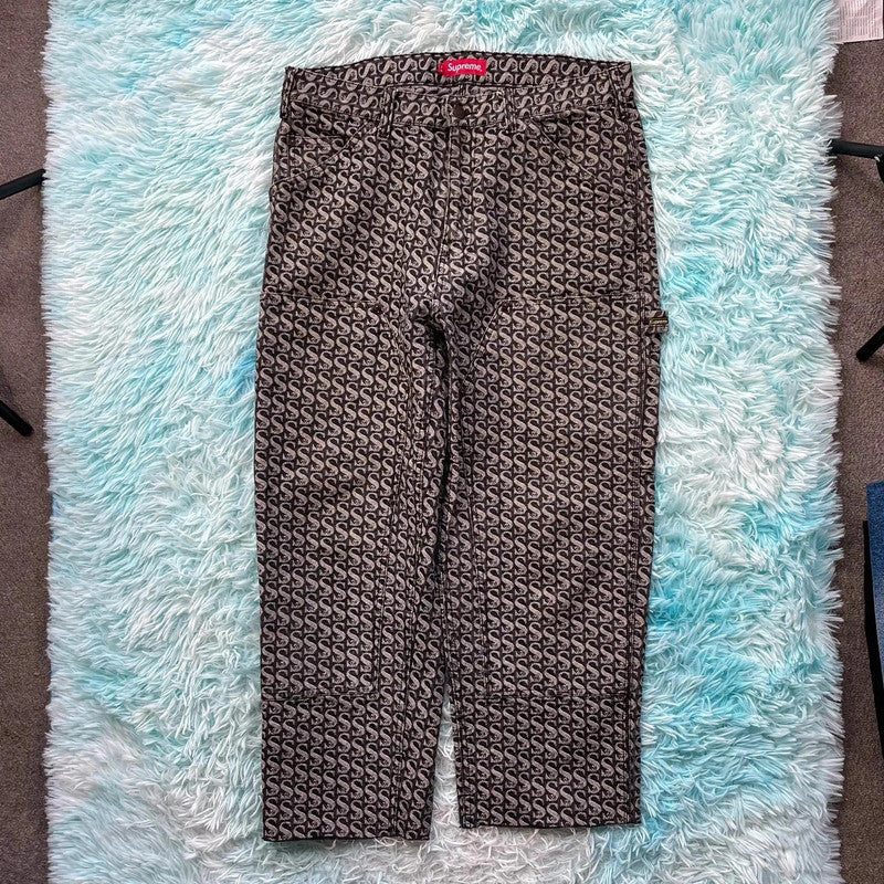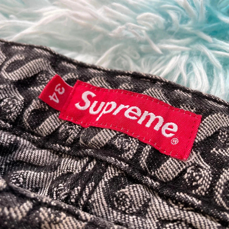 Grey Supreme Jacquard Jeans Double Knee - 34W, brand: Supreme, condition: Very good, size: W34