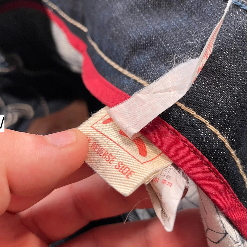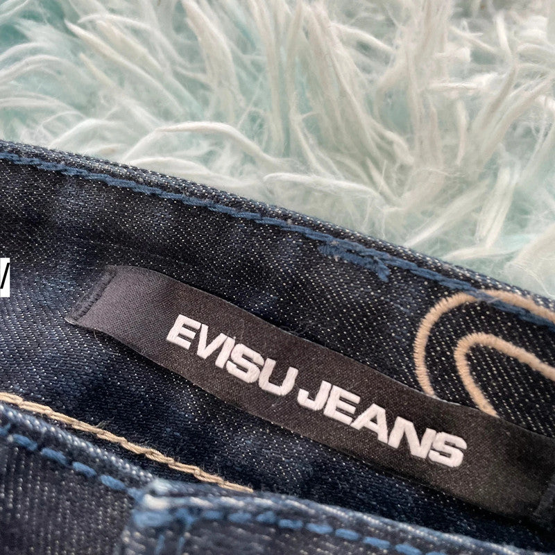 Navy Evisu Genes Jeans All Over Logo - -W32 L32, brand: Evisu, condition: Very good, size: W32