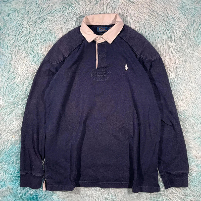 Navy Polo Ralph Lauren Rugby Shirt - Large