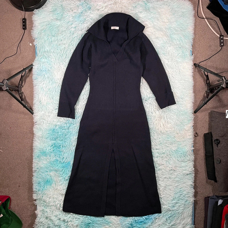 Navy Sandro Paris Knitted Dress - Size 6 EU34