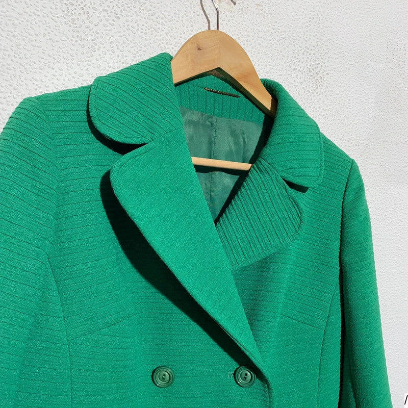 True Vintage 50s Green Long Coat Dereta - Size 12, brand: Deréta, condition: Very good, size: 8 / M