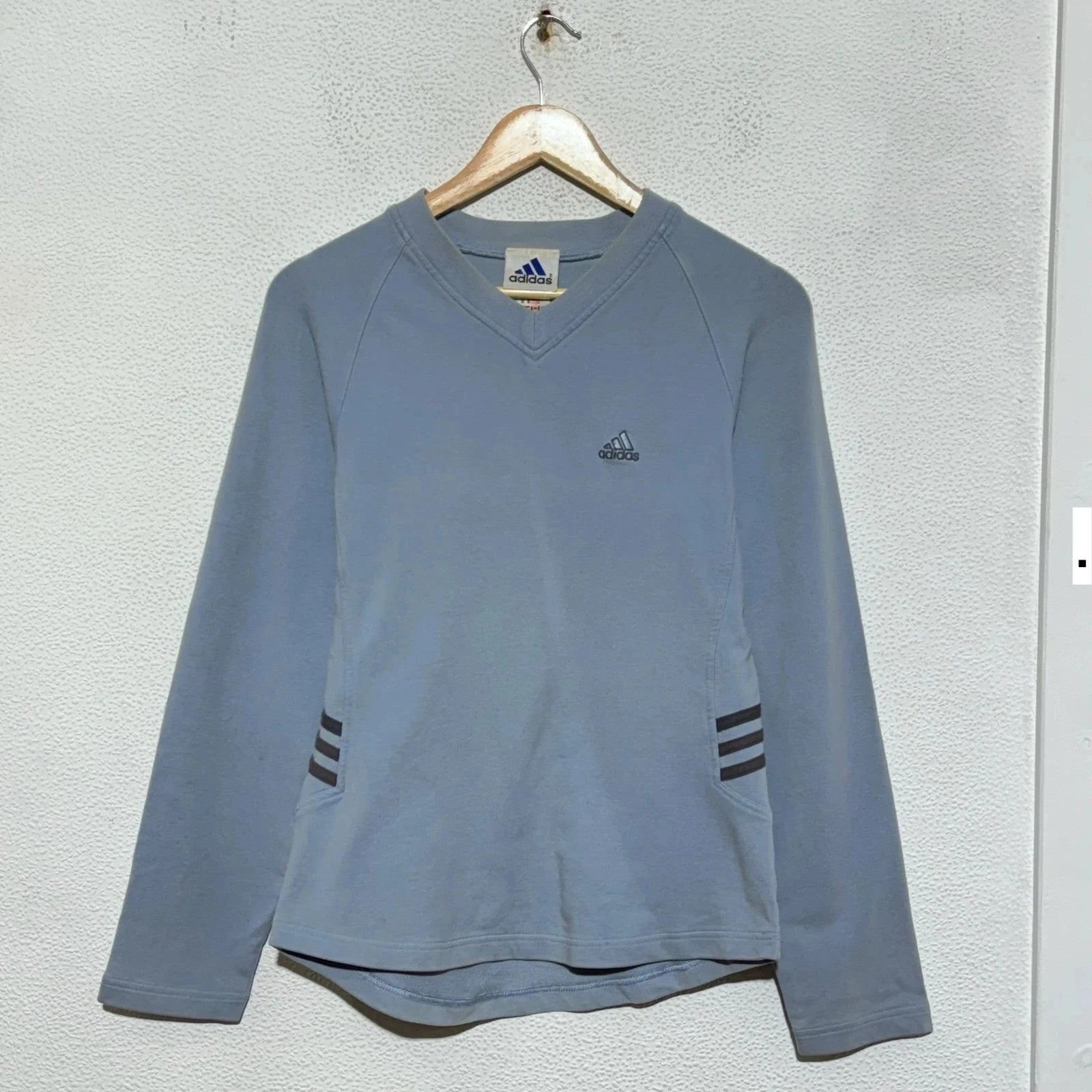 Vintage 00s Baby Blue Adidas Sweatshirt V Neck - Size 8