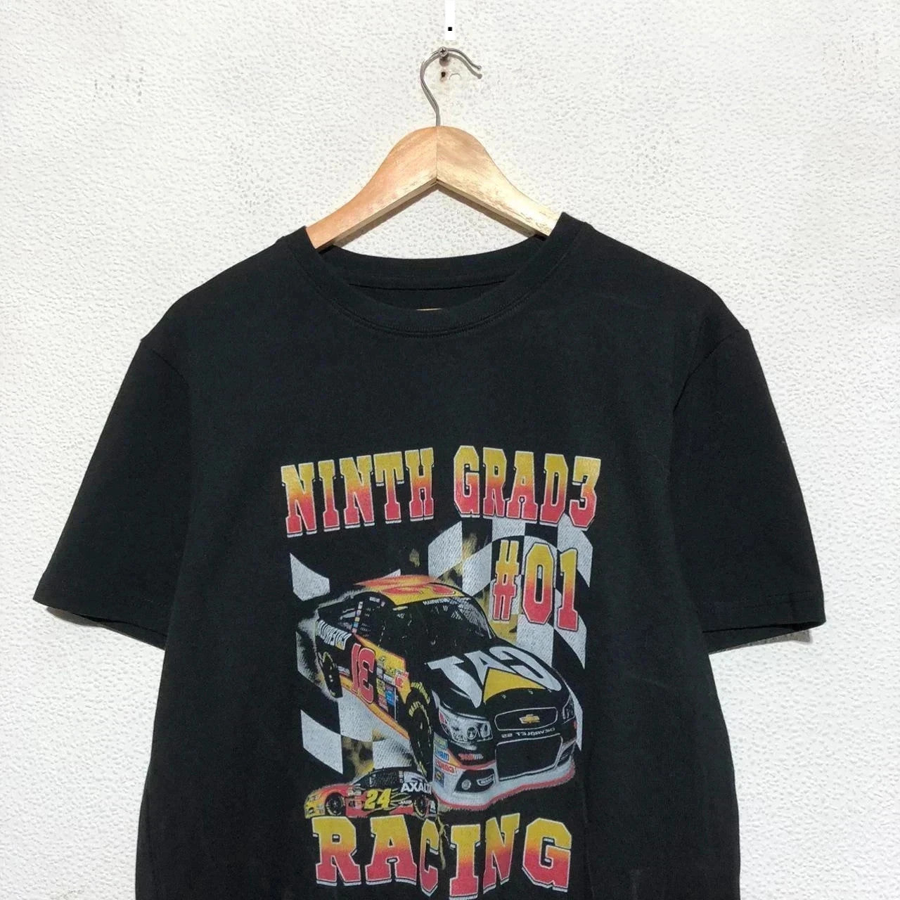 Vintage 00s Black Nascar Racing T Shirt Cat Car Graphic - Medium