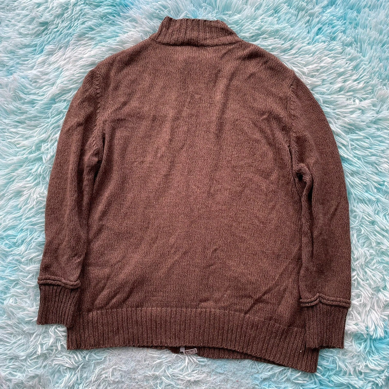 Vintage 00s Brown Olsen Knitted Jumper Full Zip - Medium