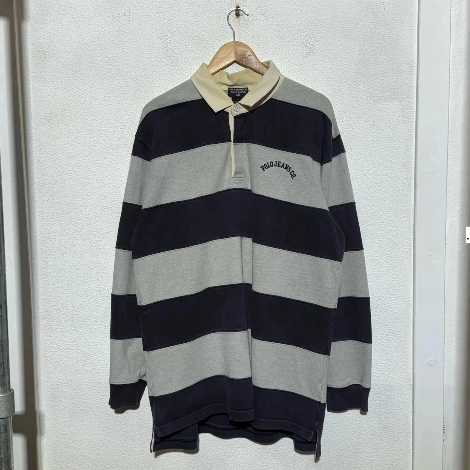Vintage 00s Grey & Navy Ralph Lauren Rugby Shirt - Large
