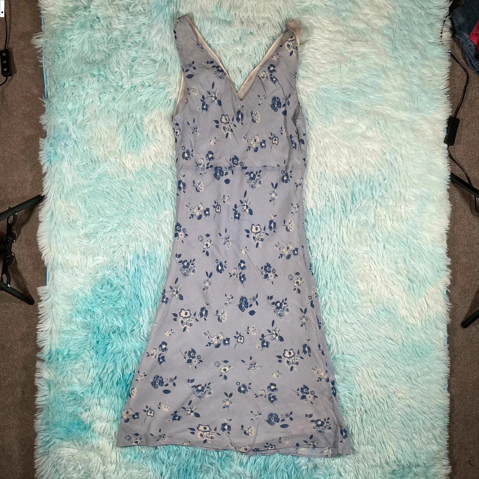 Vintage 00s Light Blue Patterned Jigsaw Dress - UK8
